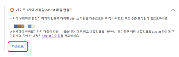 클릭을 하면 ads.txt 파일을 다운로드할 수 있는 화면이 나오게 되는데요.