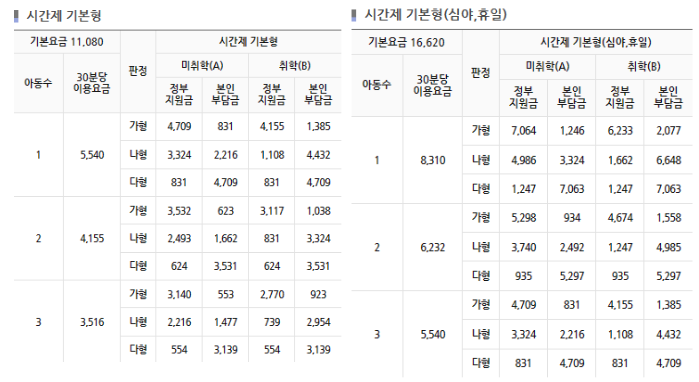 정부에서 지원해 주는 지원금액은 시간제 서비스는 연간 960시간을 지원하고 영아종일제는 월 200시간을 지원해주고 있으므로 참고하시기 바랍니다.